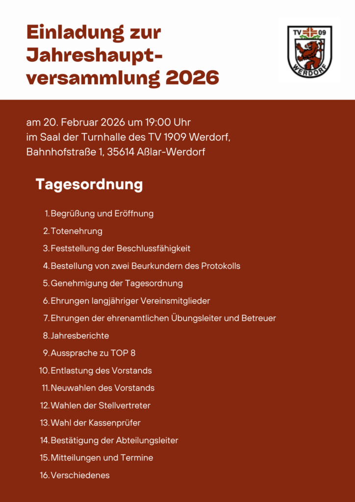 Wenn Sie Räumlichkeiten der TV-Halle für Familienfeiern nutzen wollen,wenden Sie sich bzgl. der Halle und Gaststätte an Jürgen Hagner,